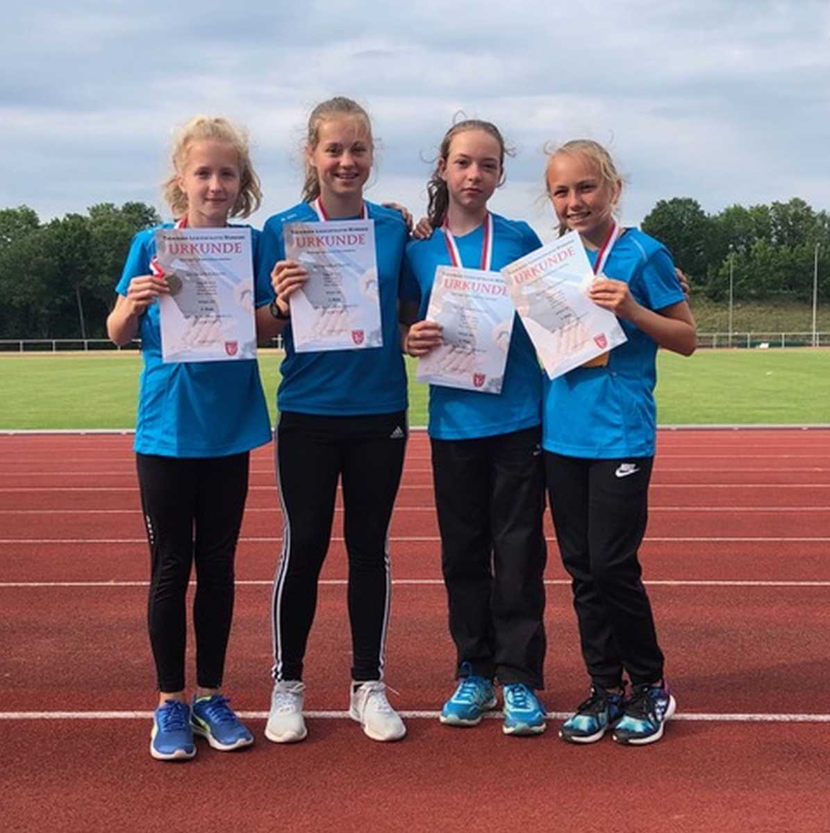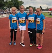 In einem sehenswerten und spannenden Staffellauf erliefen sich die jungen Damen, allesamt aus dem jüngeren Jahrgang, ebenfalls die Silbermedaille, steigerten ihre Leistung gegenüber der Vorwoche um 1 Sekunde auf 40,73 sec. und ließen so etliche Favoriten hinter sich.