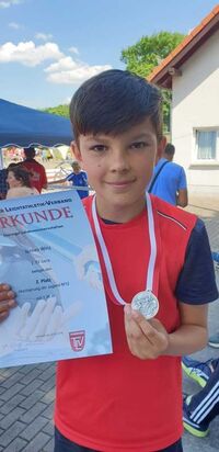 So konnte Jannes Winz in der M12 - Silber - im Hochsprung mit übersprungenen 1,36m gewinnen, nicht zuletzt aufgrund seiner bis dahin makellosen Bilanz über die vorher aufgelegten Höhen.
