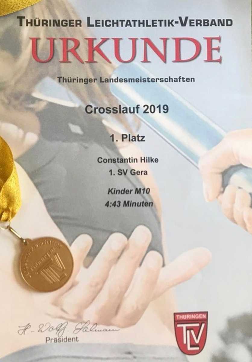 Nur 2 Tage nach dem Sieg beim Schulcross der Geraer Schulen im Hofwiesenpark startete Constantin Hilke bei den Landesmeisterschaften im Crosslauf in Ohrdruf.
