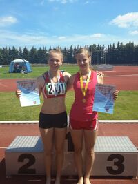 Charis Hoffmann gewann in der W14 im Siebenkampf die Goldmedaille. Am ersten Wettkampftag kam sie im 100m-Lauf mit 13,93s, bei Gegenwind, knapp an ihre Bestleistung heran. Mit 10,07m im Kugelstoßen und 4,63m im Weitsprung setzte sie sich mit 100 Punkten von der Konkurrenz ab. Diesen Abstand konnte sie am zweiten Wettkampftag halten. Charis stellte im 80m-Hürden-Lauf mit 13,06s eine neue Bestleistung auf. Sarah Linke stieß in ihrem Siebenkampf der W15 die Kugel auf eine neue Bestleistung (11,82m). In ihrer Paradedisziplin, dem Speerwurf, konnte Sarah mit 37,52m ihre ganze Stärke ausspielen. Insgesamt wurde sie mit 3516 Punkten Vize-Landesmeisterin. Der Sieg ging an Frances Brandenburg (SV Großengottern), die mit 3614 Punkten die Norm für die Deutschen Meisterschaften erfüllte.