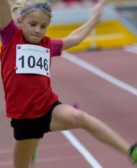Tara Kroll bewies in der Altersklasse W10 ihre Vielseitigkeit. Sie gewann die 30mflg. (4,49s), den 50m-Lauf (8,83s) und ihre Primäre über die 60m-Hürden (12,41s). Im Weitsprung wurde sie mit 3,12m Dritte. Erstmalig lief auch Tony Mühlau in der M10 über 60m-Hürden. Bis auf die letzte Hürde konnte er im angestrebten Dreier-Rhythmus durch laufen und kam mit guten 12,34s ins Ziel. Im Weitsprung gelang ihm erneut eine Bestleistung (3,68m). Yara Schneider (W11) verpasste im 50m-Sprint (8,38s) und über die 60m-Hürden (13,04s) als jeweils Vierte knapp das Podest. Auch sie verbesserte sich im Weitsprung. 3,65 blieben im Protokoll stehen. Damit steigerte sich Yara um 30cm! Olivia Prömel lief im 60m-Sprint zu einer neuen Bestleistung (9,73s). Im Weitsprung musste sie zum ersten Mal vom Brett springen. Diese Umstellung fiel ihr schwer. 3,33m war am Ende ihr Ergebnis. |
