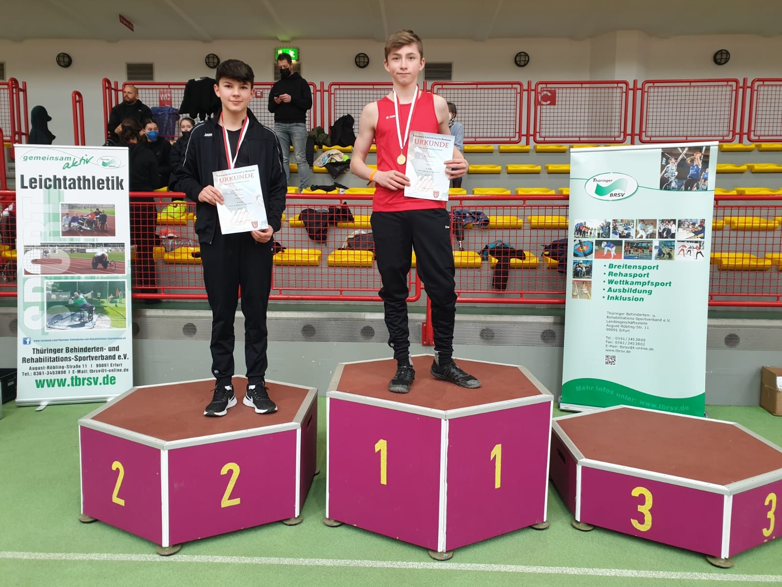 Sandrine Hilke bewies im Fünfkampf ihre Vielseitigkeit und gewann in der W15 eine Silbermedaille. Ähnlich lief es eine Woche später bei den Einzelmeisterschaften über die 60m Hürden. Nach einem tollen Hürdenlauf konnte sie mit einer Zeit von 9,55s und ebenfalls Silber sehr zufrieden sein. Eddie Behr (M14) meldete sich nach langer Verletzungspause beeindruckend zurück. Im 60m-Sprint gewann er überraschend mit einer starken Leistung (7,94s) Silber. Im Stabhochsprung gelang Jannes Winz eine neue Bestleistung. Er wurde dafür mit der Silbermedaille belohnt.