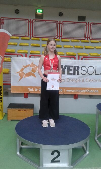 Am 06.12.2025 fand in der Erfurter Hartwig Gauder Leichtathletikhalle die Thüringer Landesmeisterschaften im Stabhochsprung statt. Zum ersten Mal mit dabei, die erst 11-jährige Marie Haßmann, als einzige Starterin aus unserem Verein. Marie meisterte ihren ersten Stabhochsprungwettkampf mit Bravour. Sie schaffte alle Sprunghöhen bis 2,20 m im ersten Versuch. Mit dieser Sprunghöhe verbesserte sie den 25 Jahre alten Landesrekord in der Altersklasse W 11, um beeindruckende 50 cm ! Sie belohnte sich damit für ihren Trainingsfleiß in den letzten Wochen. Mit ihrer übersprungenen Höhe wurde sie zugleich Vize-Landesmeisterin in der Altersklasse W 12. Herzlichen Glückwunsch und weiter so.