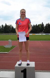Sarah Linke trat am 10.06. beim Blockmehrkampf in Thum an. Dabei erfüllte sie mit 2514 Punkten die geforderte DM-Norm für Lübeck (2475 Punkte). Mit zwei starken Wurfdisziplinen legte sie den Grundstein für diese Leistung. Im Kugel stieß sie mit 11,70m Bestleistung. Im Diskus kam sie auf 31,60m.