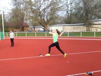 Sarah Linke war am selben Tag in Freiberg unterwegs und versuchte die DM-Norm im Block Wurf zu erfüllen. Im Diskuswurf gelang ihr mit 30,32m der erste 30m-Wurf. Im Kugelstoßen und im Weitsprung rief sie ihr Leistungsvermögen mit 10,91m und 4,74m solide ab. Ihre Wackeldisziplin Hürden absolvierte Sarah ohne Sturz und kam mit 13,49s ins Ziel. Leider war im 100m-Lauf der Gegenwind zu kräftig. Mit einer Zeit von 14,84s fehlten Sarah im Gesamtresultat 26 Punkte auf die DM-Norm.