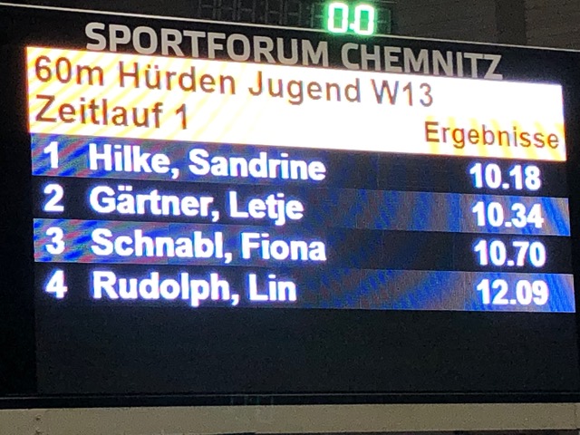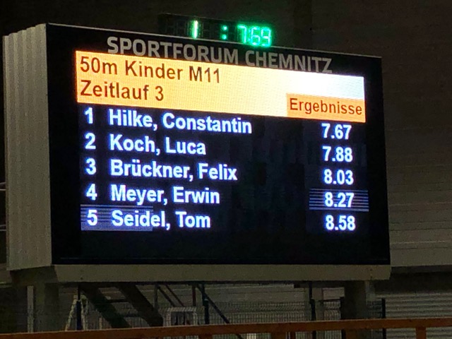 Am letzten Freitag vor Weihnachten findet traditionell ein zweiter Testwettkampf in der Chemnitzer Leichtathletikhalle statt und so waren wir auch in diesem Jahr mit einer kleinen Auswahl von Sportlern des 1.SV Gera am Start.