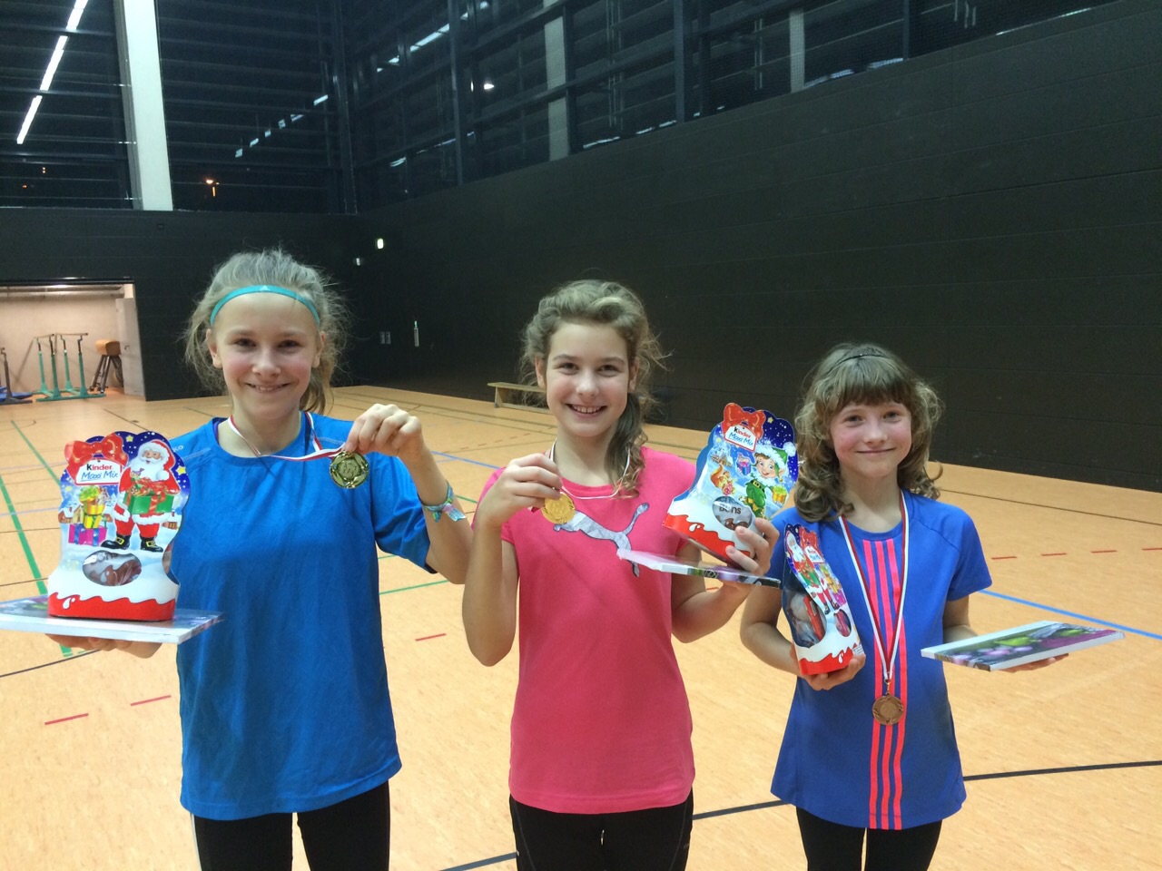 Im Anschluss an das Springen spielten wir noch das beliebte Völkerballspiel und führten danach eine weihnachtliche Siegerehrung durch, wo sich jeder Teilnehmer über eine kleine Überraschung freuen durfte. Zusätzlich bekamen die drei Besten der Jungs und der Mädchen eine Medaille überreicht.