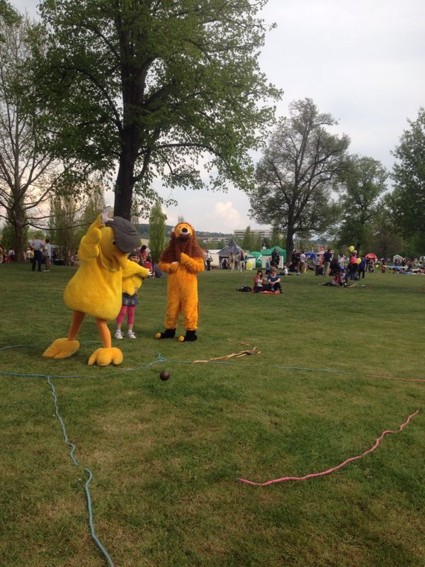 Unser Fanfarenzug stellte seine Insturmente aus und gab eine kleine Kostprobe von ihrem Können. Die kleinen Hofwiesenparkbesucher durften sich anschließend auch einmal an den Insturmenten ausprobieren. Die Abteilung Leichtathletik brachte einige Athleten aus der Trainingsgruppe mit und bauten für die Kleinen einen Hindernisparcours auf. Für die etwas Größeren gab es mit dem Wurftrainer Martin Grzanna das Kugelstoßen. Selbst der "goldene Spatz" besuchte unseren Stand und probierte sich an der Kugel. Am Ende der Veranstaltung erhielten die ersten drei Plätze eine Urkunde.