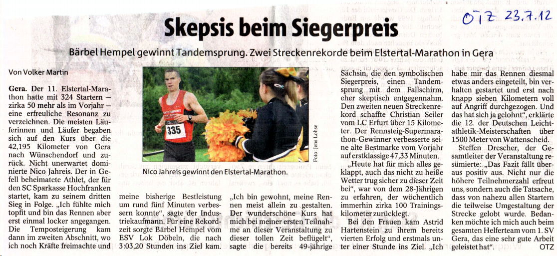 OTZ - 23.07.2012 Medienecho zum 11. Elstertal-Marathon